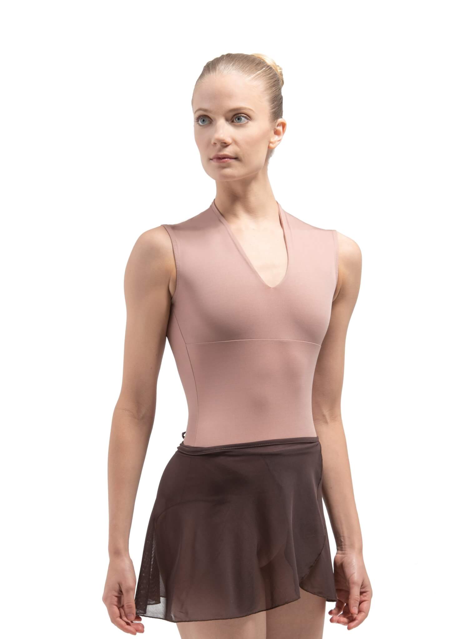 Kort omslagsskjørt med snøring i livet. Skjørtet er i elastisk mesh-materiale og med elastisk knyting i livet.